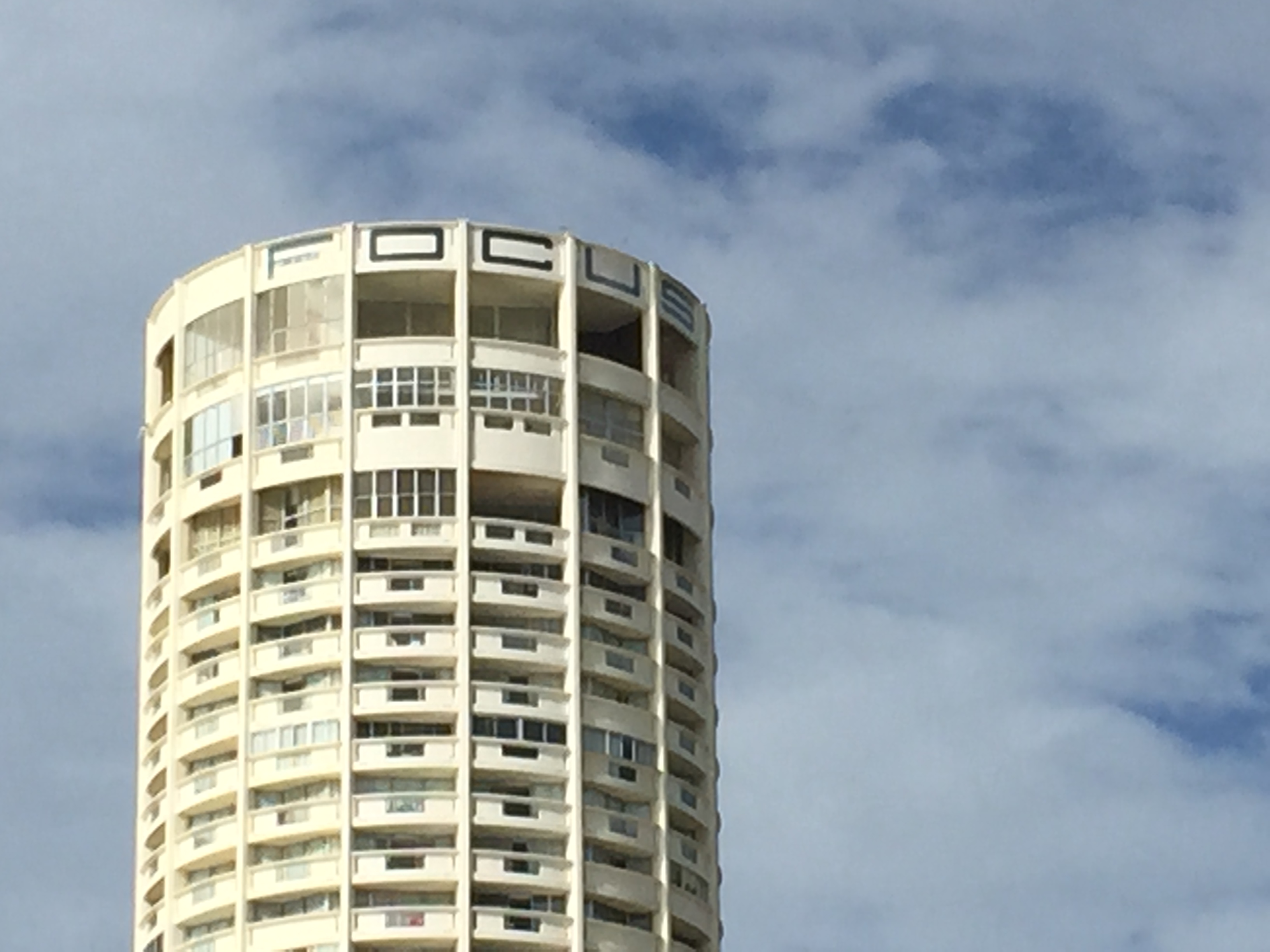 Having a mindful beach stroll on the Gold Coast last weekend I was looking up (something I now try to do more often) and was struck by the apartment block pictured above with the word ‘Focus’ at the top.