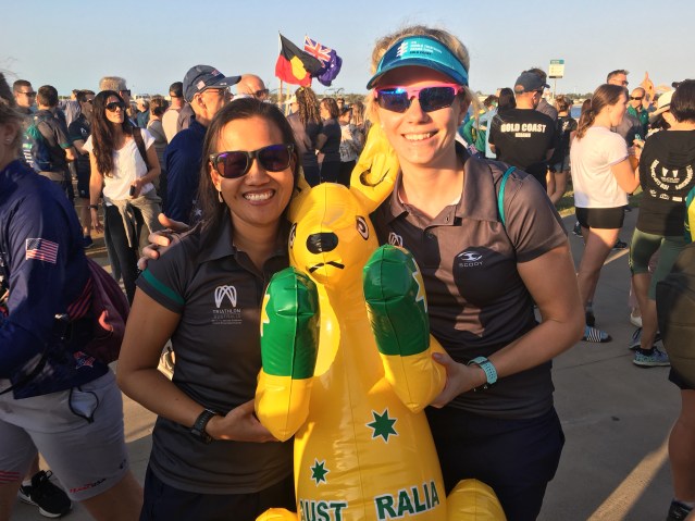 Patience is a virtue – With the reality of having a 3 and 1 year old, a solid job and a husband who coaches and races at a top level, I knew I realistically I wasn’t going to be able to fit in two sessions a day. I had to accept that a lot of my competitors would be training more and just focus on what I could do and not worry about anyone else. A saying I heard which rang true is ‘comparison is the evil of all joy’. I just kept my head down and ticked off what I could do and kept improving against myself. I believe no one has exactly the same composition or circumstances as you do so it’s hard to directly compare yourself to others. If you focus on developing your own personal bests that’s something you can track. Comparing myself to myself in a growth mindset approach, I raced a lot better in the Gold Coast than in 2012 when I raced at the world age group tri champs in NZ and came 72nd in my AG.