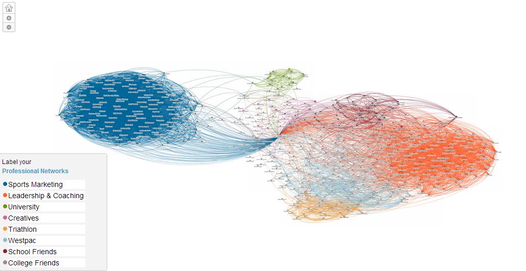 A useful way to view our professional network is through LinkedIn Labs In Maps. I’ve presented mine below, which is categorised by colours. The dense blue connections on the left shows my London sports marketing network and the orange on the right my Sydney leadership and coaching network. Other categories include university friends and triathletes from my club. Of great interest from a network perspective are the brokers between my network areas and those on the periphery who are most likely to disrupt my thinking or introduce me to someone outside of my network. I would encourage you to map your network and have a look! To make real connections with key members of your network I recommend you reach out and arrange a face to face meeting or skype with a mutual purpose to build rapport.